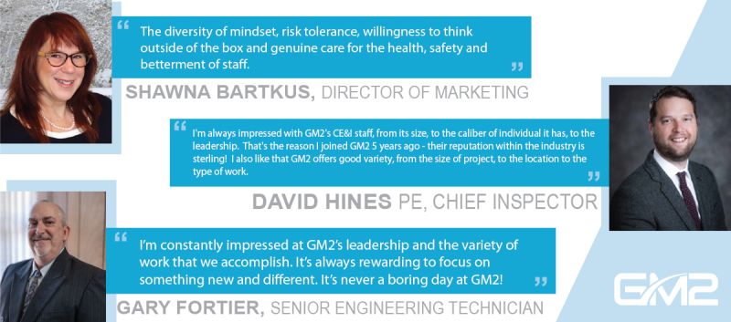 Frank Kusta, Construction Inspector in our Connecticut office who has been with us for almost 8 years said “Some things I enjoy about working at GM2 are the great opportunities I have been able to be put in working in construction inspection. Not only… Read More