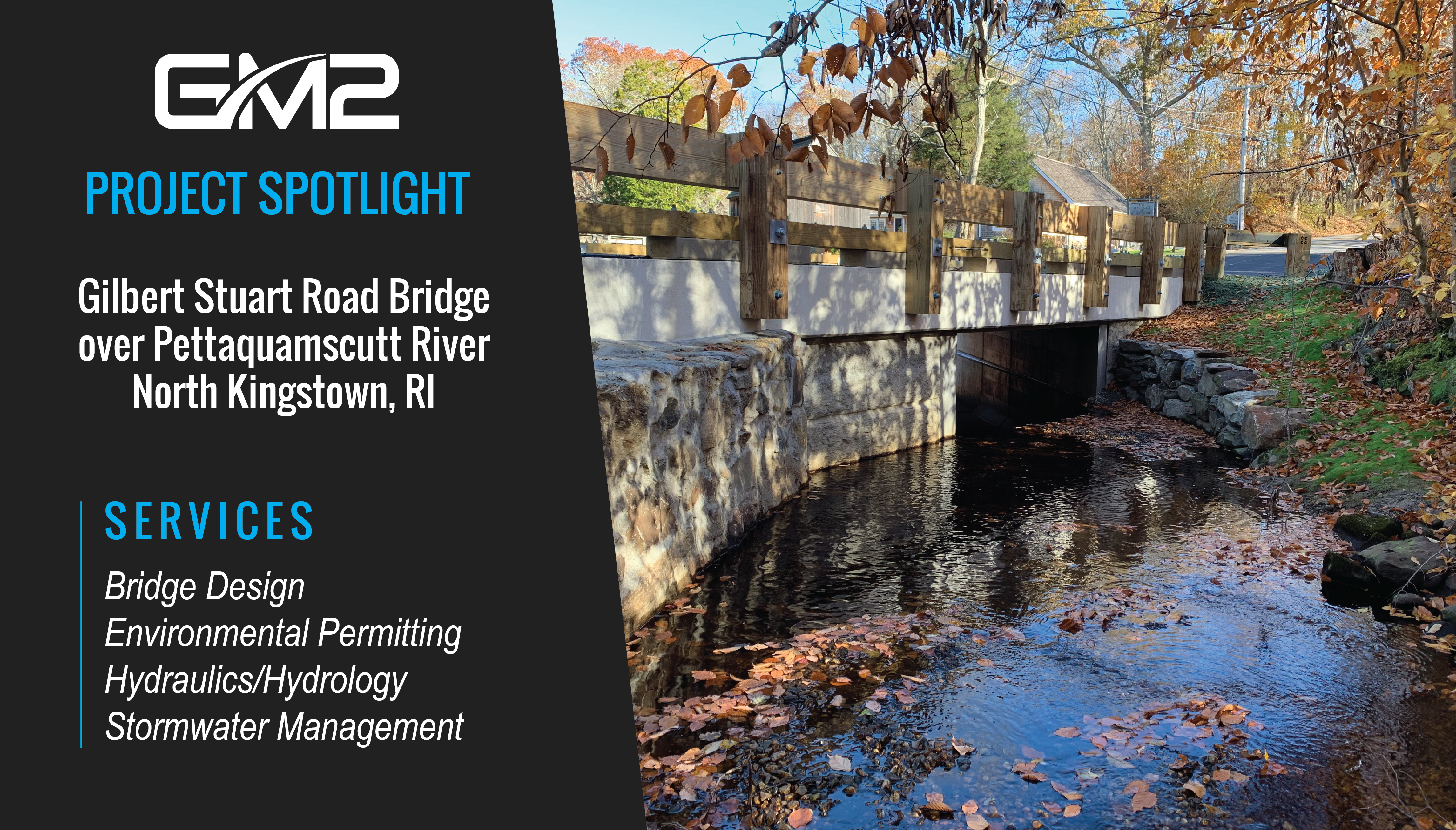 The Gilbert Stuart Road Bridge in North Kingstown, RI supports the largest anadromous fish run in the state as they travel upstream from the Pettaquamscutt River and into Carr Pond Dam. GM2 worked closely with Town of North Kingston to complete this project.… Read More