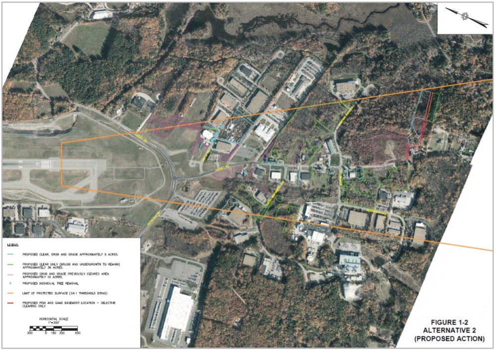 GM2 is currently providing environmental support for the construction phase of this project, which involves approximately 60 acres of tree clearing off the southern end of Runway 17-35 at Manchester-Boston Regional Airport. The project area contains wetlands and sensitive habitat for several state-listed endangered species. GM2 is tasked with conducting site inspections to monitor Best Management Practices (BMPs) and compliance with the Stormwater Pollution Prevention Plan (SWPPP), New Hampshire Department of Environmental Services (NHDES) Wetlands Permit, and NHDES Alteration of Terrain Permit. GM2 is also responsible for coordinating with resource agencies, including NH Fish and Game and NHDES, and preparing an initial post-construction monitoring report, as required by the project’s Wetlands Permit.