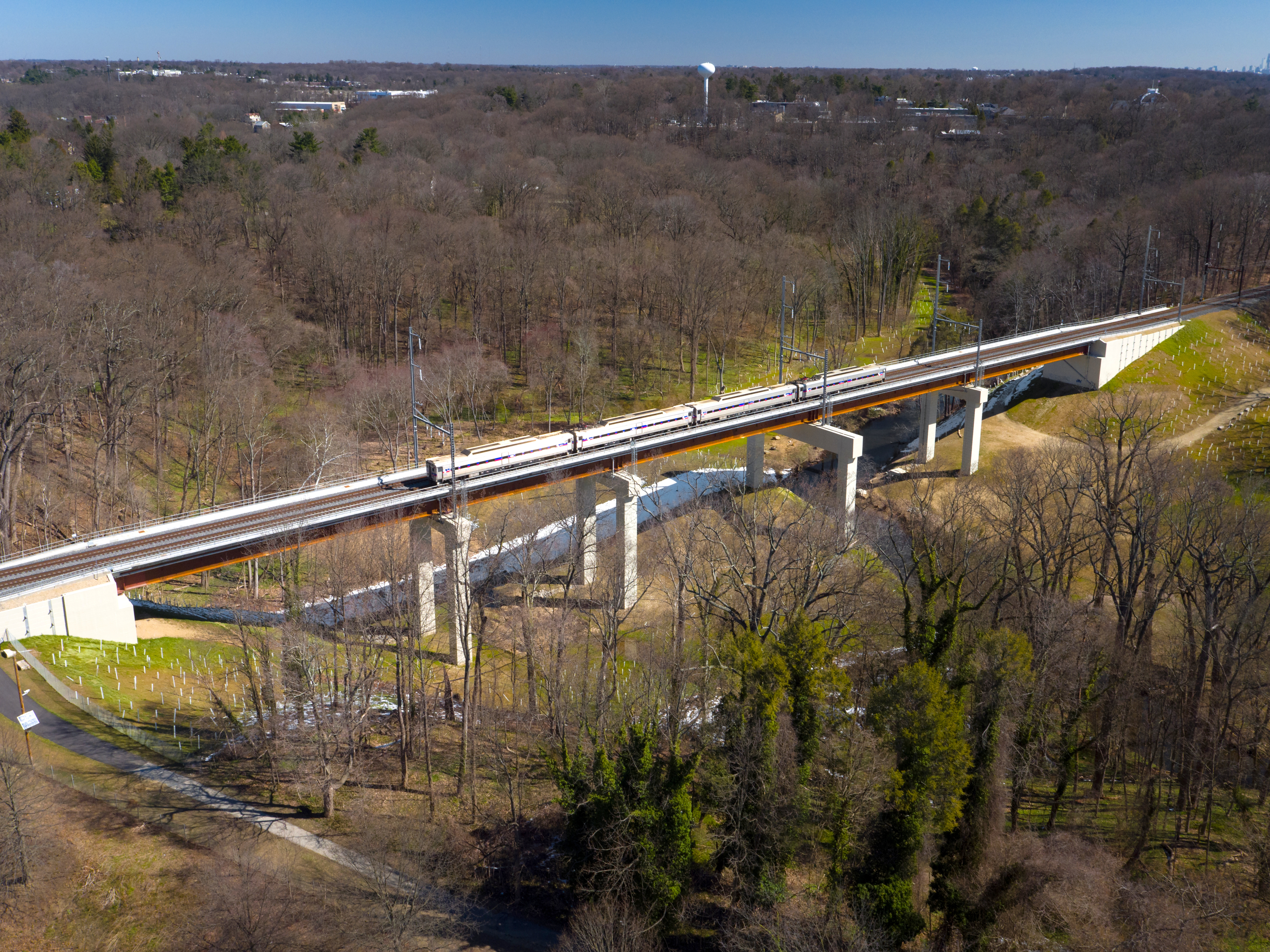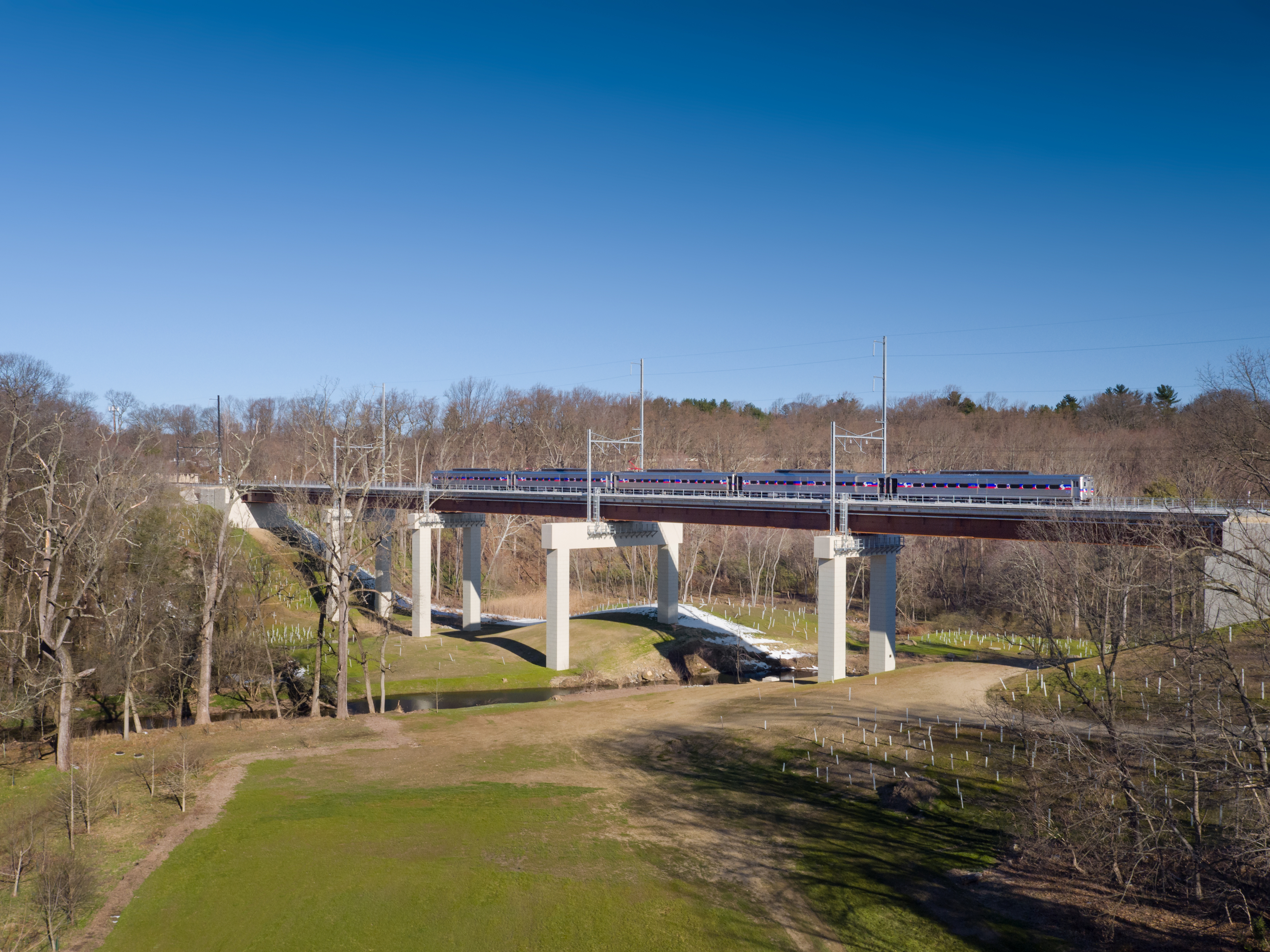 GM2's Complex Bridge staff participated in the design of this Design/Build project, which replaced the 120-year old rail viaduct bridge on the busy Media-Elwyn Regional Line. The new steel girder bridge has five spans and is 735-feet long.