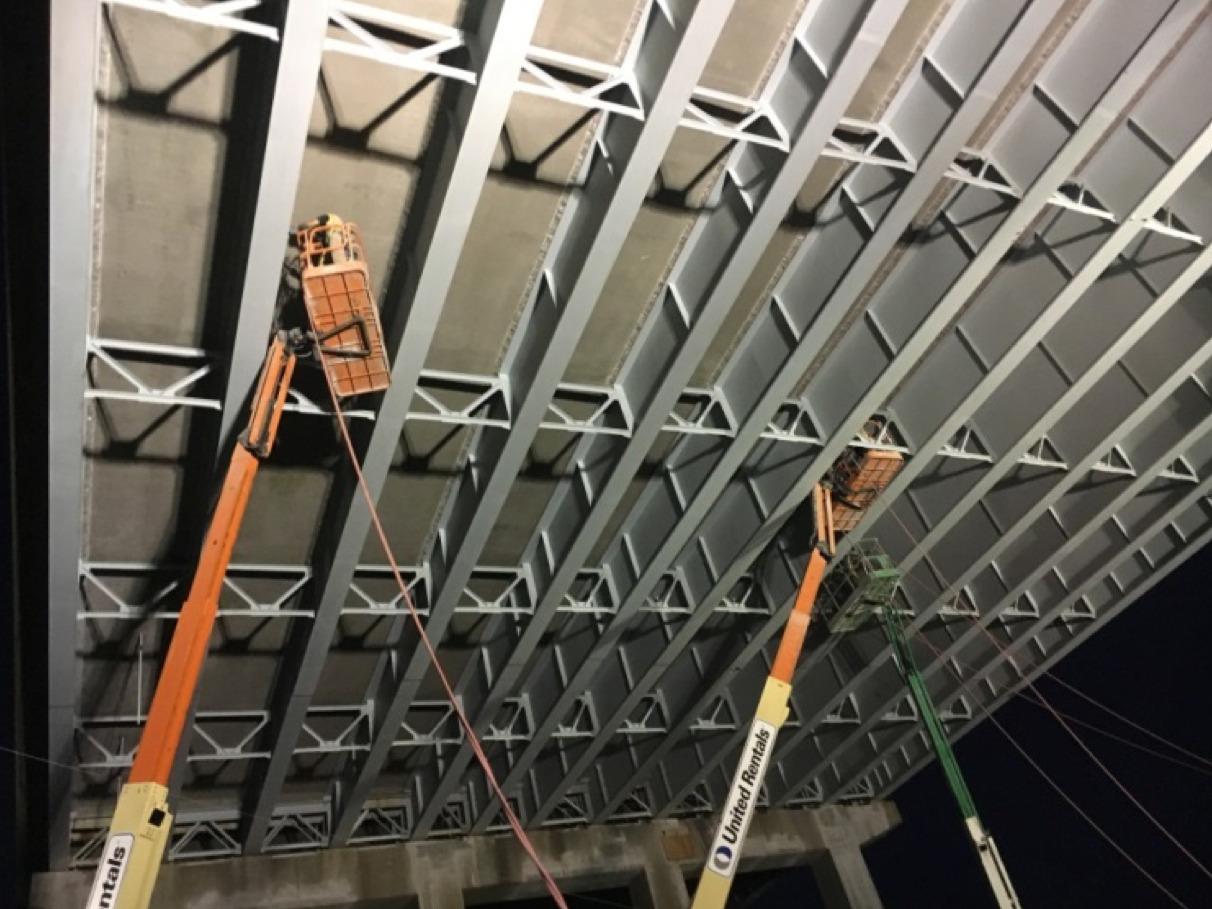 The completed $38M I-95 Southbound Structure project consisted of Structure Class S repairs, Abrasive Blast Cleaning and Coating of Beam Ends, Steel Repairs, Localized Paint Removal, Bearing Replacements, Bolt Replacements, Weld Repairs, and Joint Replacements. The improvements also included removing and replacing the existing deck membrane and roadway asphalt surfacing.
