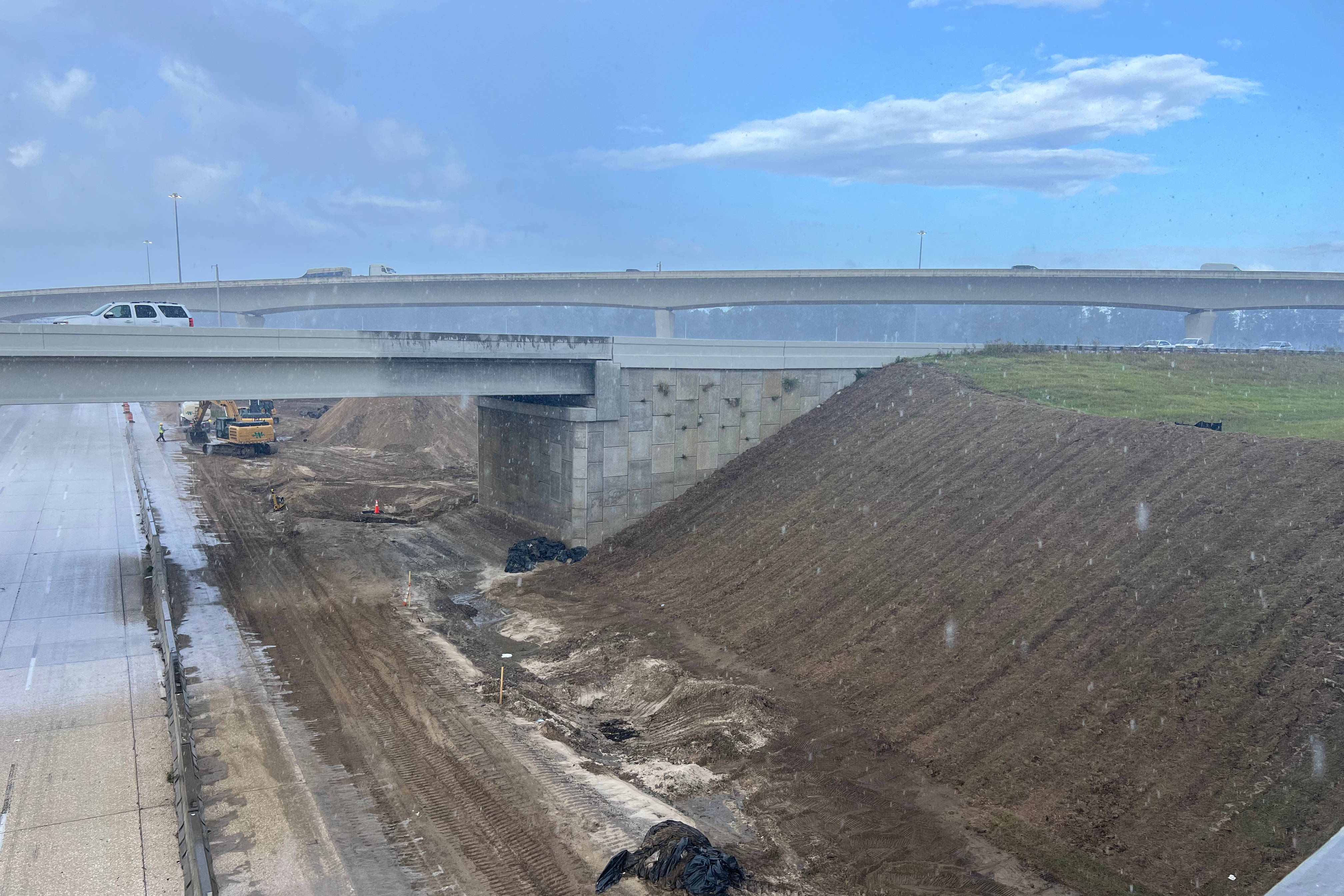 This major interchange reconfiguration project includes a collector-distributor system along I-295. The asphalt and concrete riding surfaces are constructed on engineered embankments. The work includes numerous drainage structures and erosion control devices, significant maintenance and protection of traffic, signage, ITS and lighting structures.