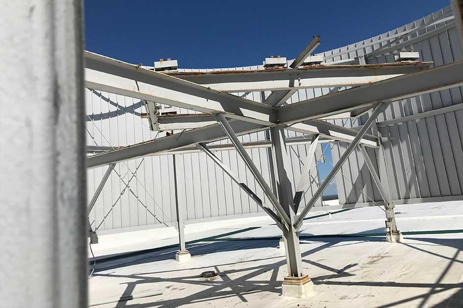 The repairs consisted of replacing the existing lateral bracing with a more robust X-bracing system along with new enclosure siding. The complete installation was analyzed and designed to meet the current wind load standards. An alternate design for a fiberglass enclosure siding was also prepared. This would give the college flexibility if in the future, a wireless carrier wanted to house a cell site within one of these enclosures.