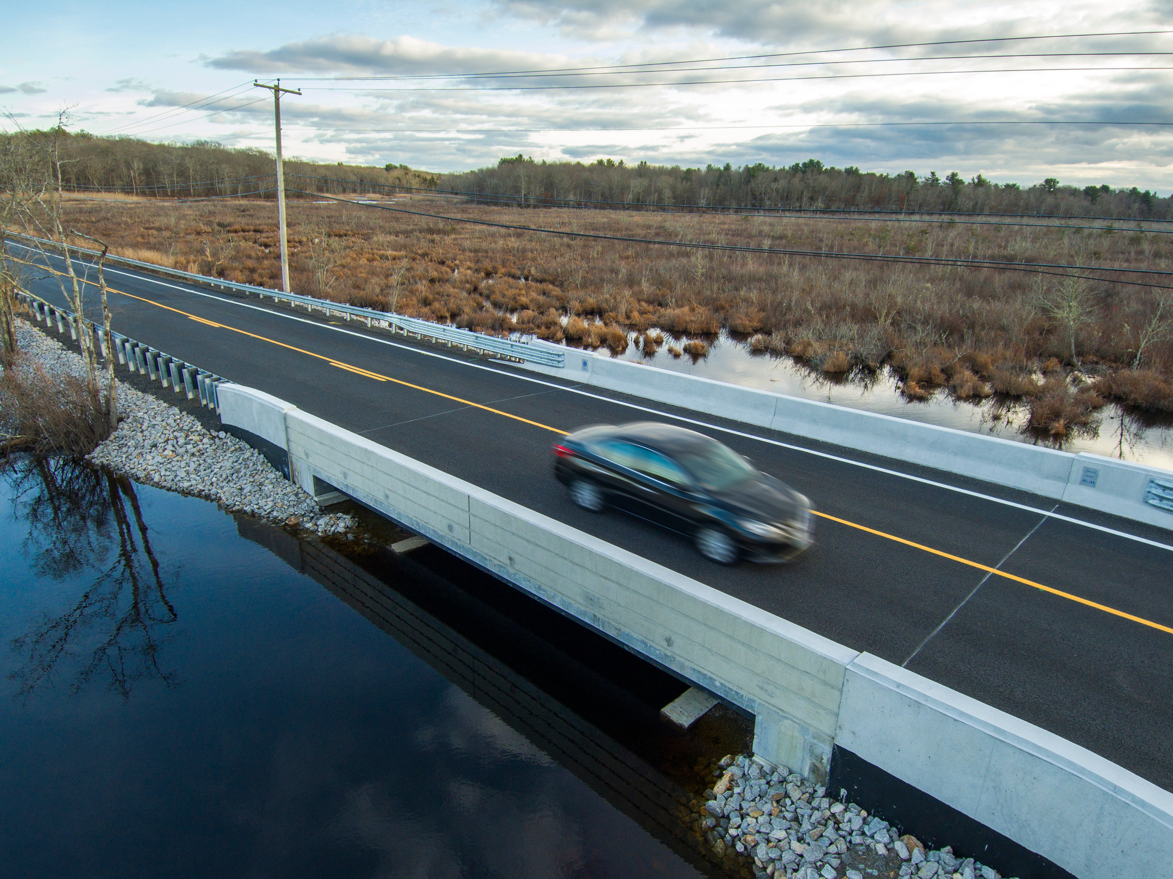 This project also involved the partial demolition of the existing bridge, temporary support of excavations, replacement of 6” gas line, dewatering, guardrails, a beaver exclosure fence, maintenance and protection of traffic, signage, clearing, as well as erosion and sediment control.