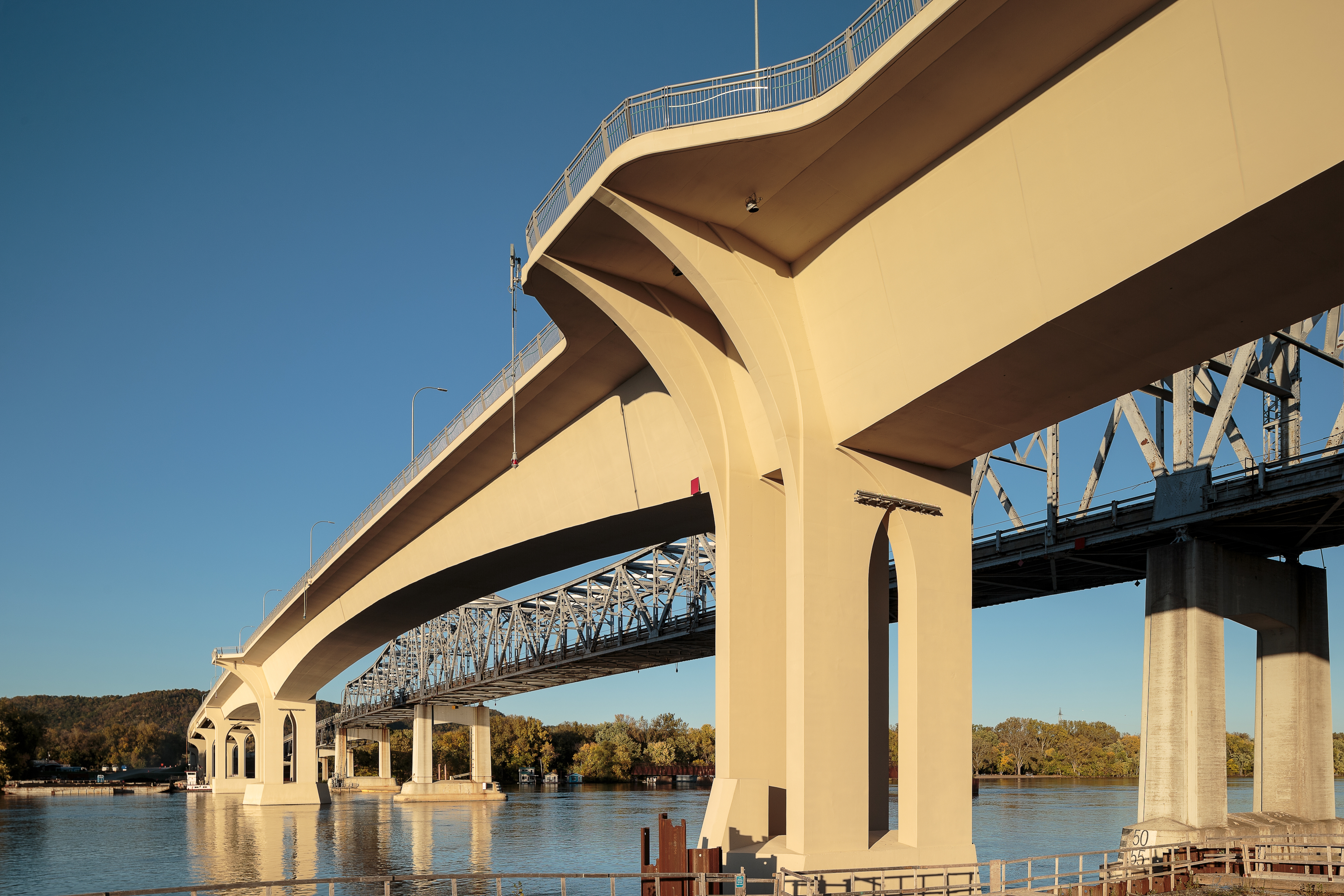 • New 2,300’ long bridge carries southbound lanes over Mississippi River